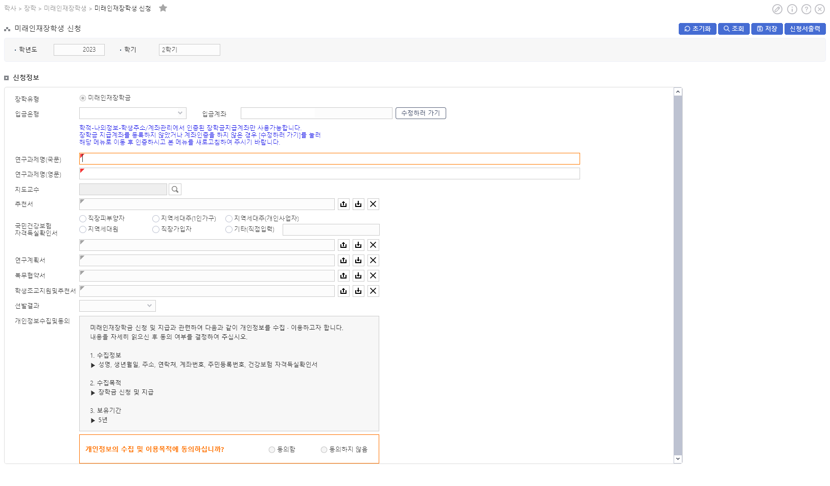 2023학년도 2학기 미래인재장학생 신청 안내