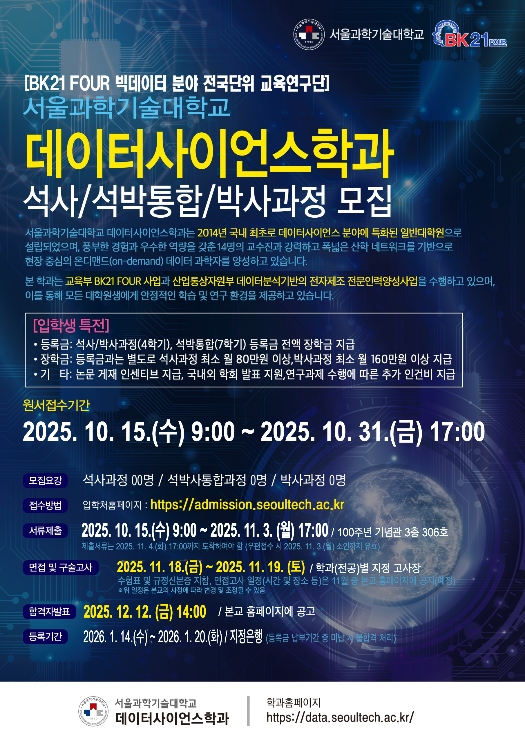 [01811] 서울 노원구 공릉로 232 서울과학기술대학교 데이터사이언스학과